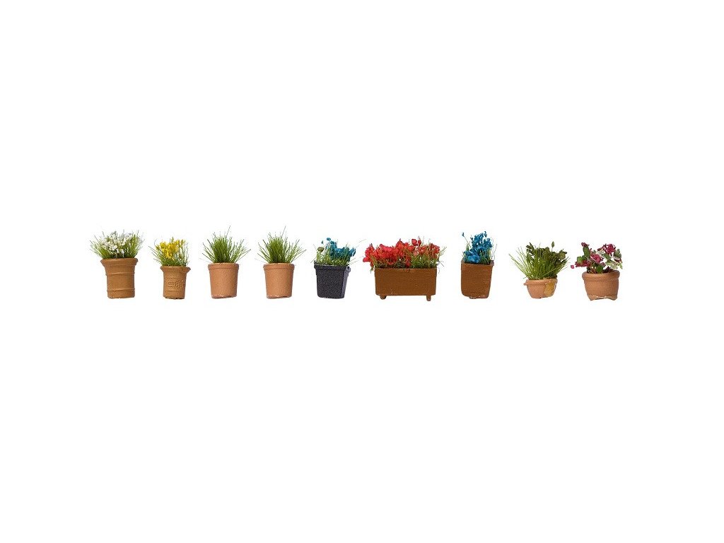 Kvetináče s kvetmi ozdobné 9 ks HO/TT/N