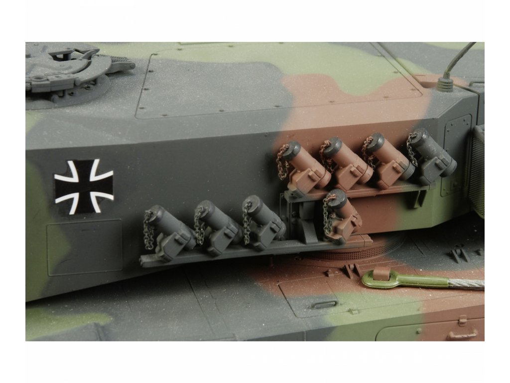 A faithful model of the German MBT (Main Battle Tank) Leopard 2, which was developed in the 1970s. It entered service in 1979 and replaced the older Leopard 1 type. Today it is a very widespread tank, which is used in various versions by 16 other countries in addition to the German army. The main armament of the A6 version consists of a 120mm caliber cannon from the Rheinmetall company with a length of 55 calibers. From 1979 until today, more than 3480 Leopard 2 tanks of various versions have been produced.