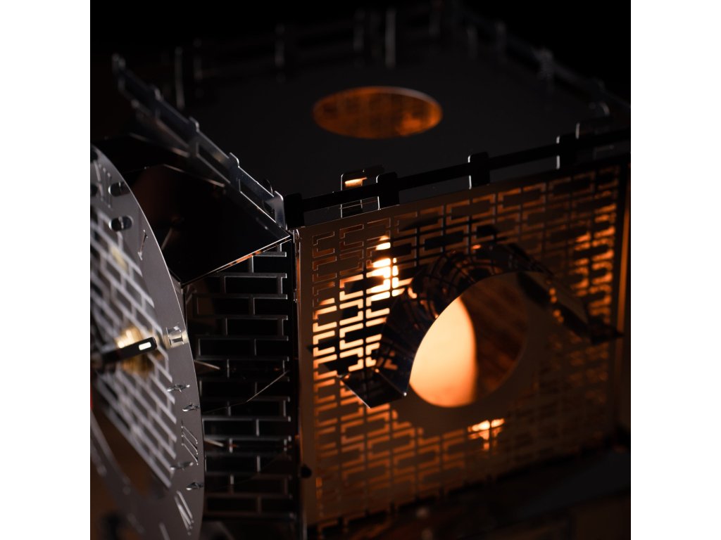 Metallic model kit. Made of high-quality polished steel sheet by laser burning and precise machining. Suitable for moderately advanced and older children. The kit includes nippers, a file, gloves, a cleaning cloth and collectibles such as a pin and stickers.