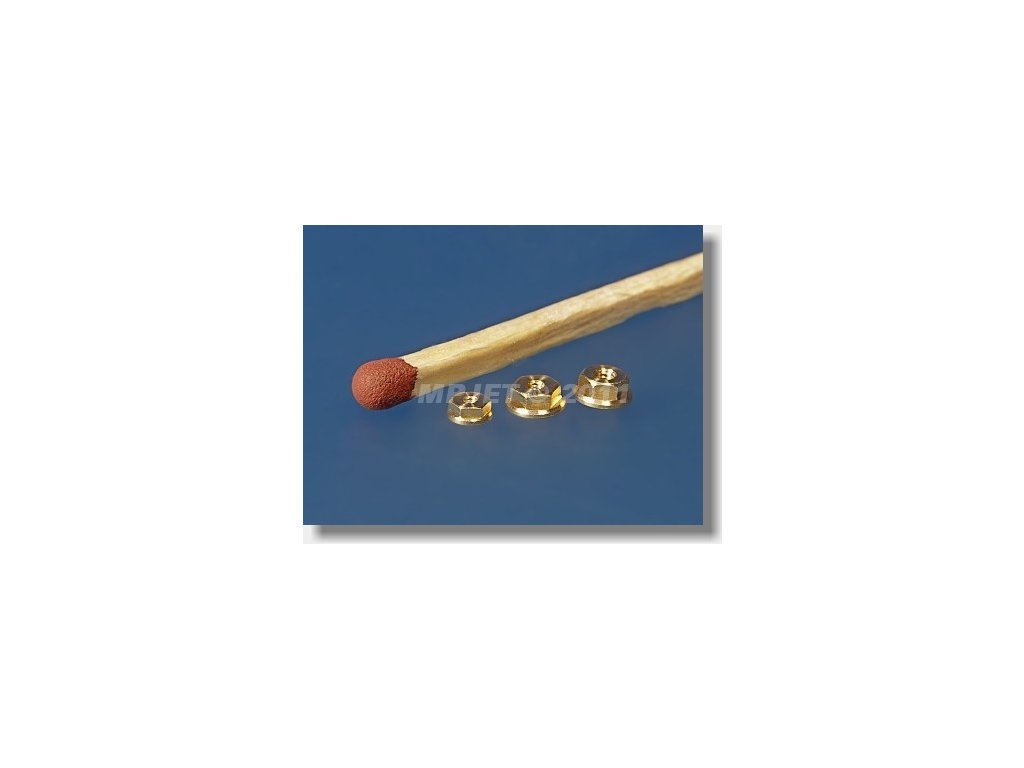 Precision turned nut with washer M1.4. Material brass CW614N.