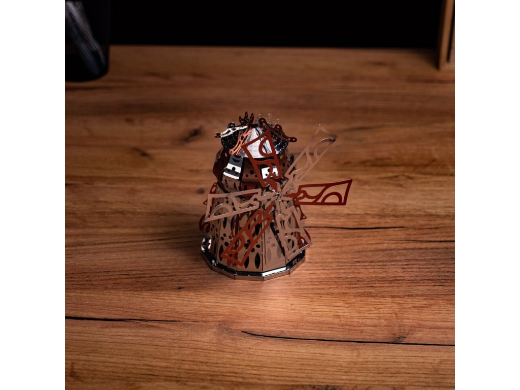 Metallic model kit. Made of high-quality polished steel sheet by laser burning and precise machining. Suitable for moderately advanced and older children. The kit includes nippers, a file, gloves, a cleaning cloth and collectibles such as a badge and stickers.