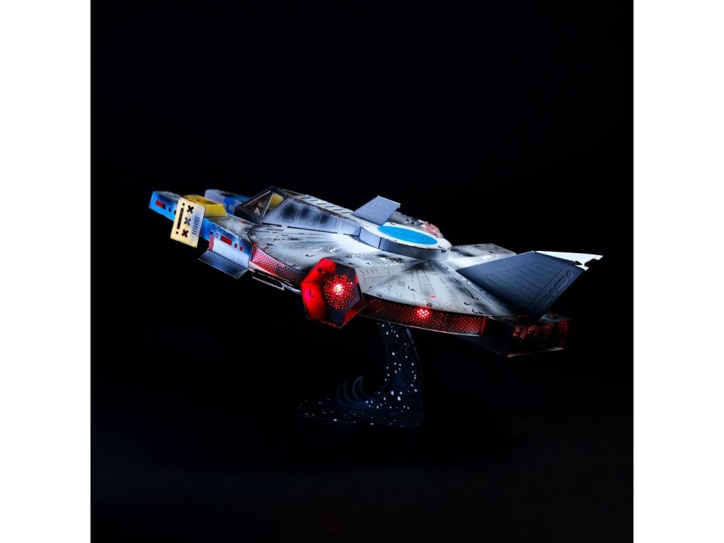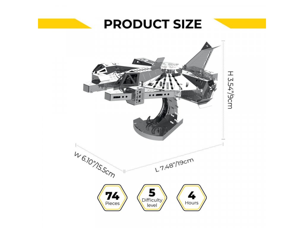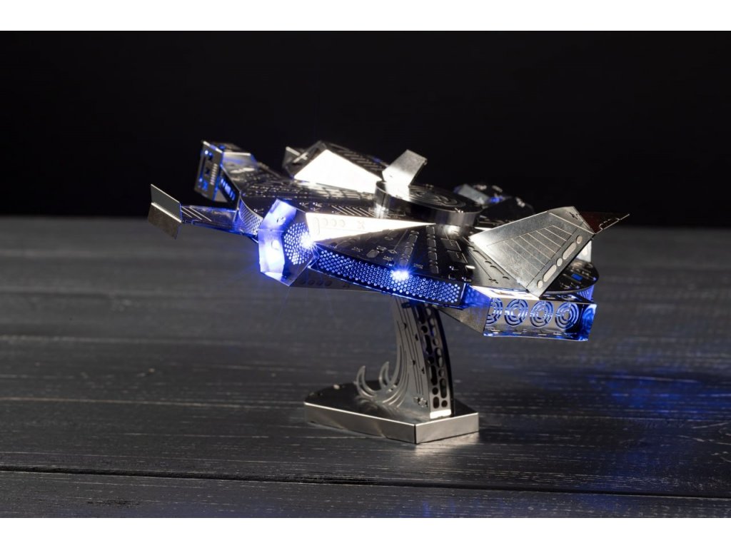 Metallic model kit. Made of high-quality polished steel sheet by laser burning and precise machining. Suitable for moderately advanced and older children. The kit includes nippers, a file, gloves, a cleaning cloth and collectibles such as a badge and stickers.