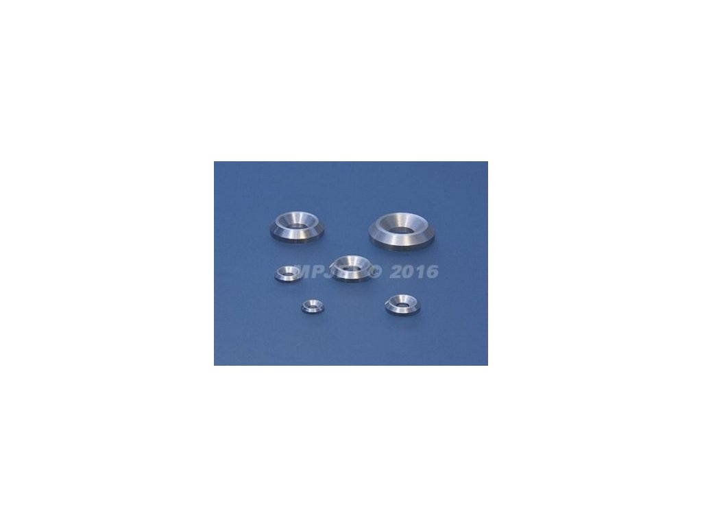 Aluminum alloy shaped washers, outer diameter 6 mm, for M2 countersunk head screws.
