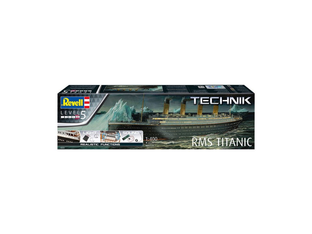 A detailed model kit of the legendary RMS Titanic, which sank on its maiden voyage in the icy waters of the North Atlantic. Electronic components that are precisely adapted to the kit and can be installed directly using convenient plug-in connections.