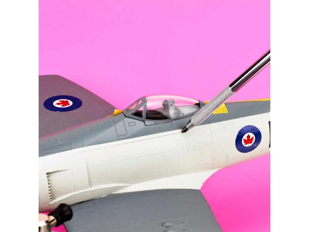 Tool suitable for marking lines on soft and hard surfaces such as various types of plastics, aluminum and duralumin sheets, copper and steel sheets. It is great for highlighting panel lines on aircraft models.
