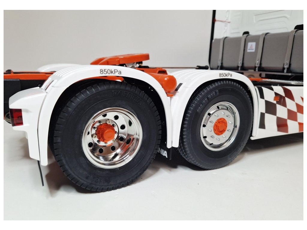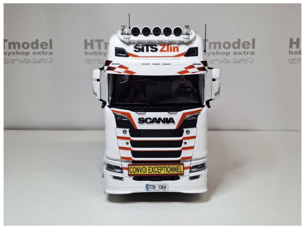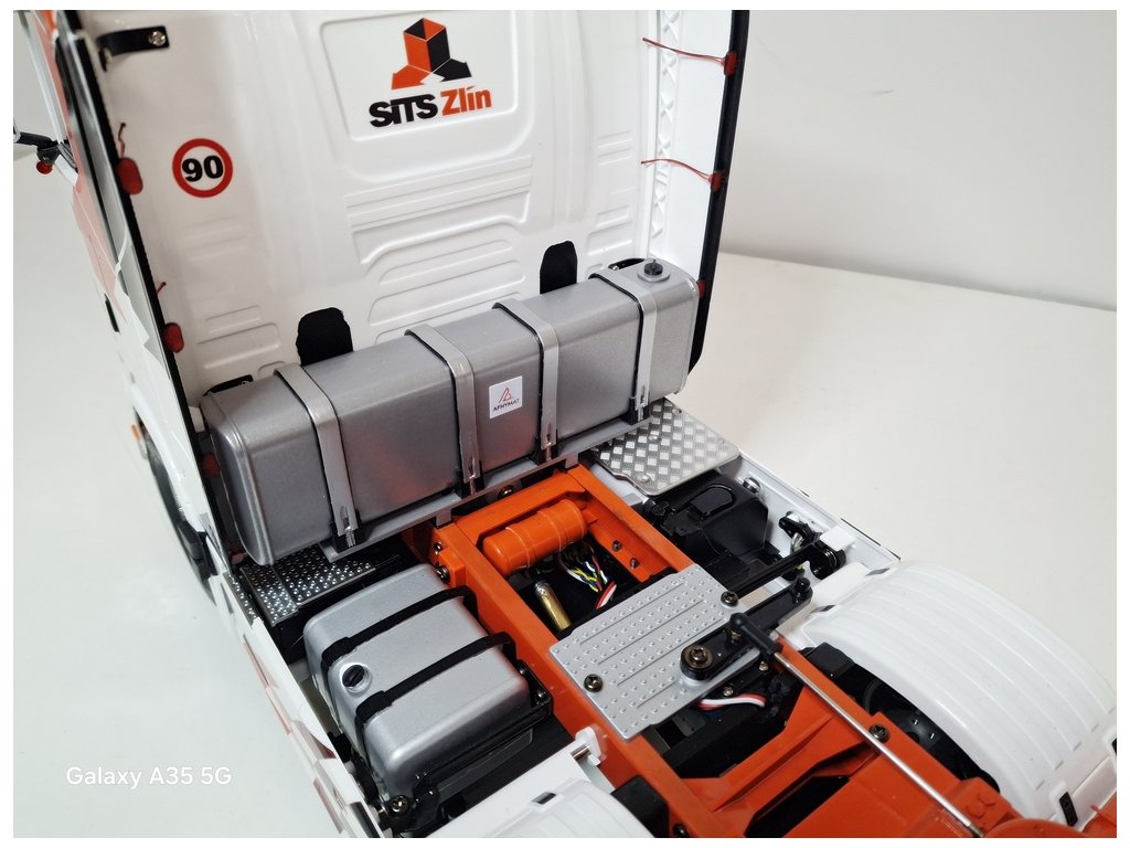The customer's request was for the highest possible model fidelity to the original. Therefore, the model built from the Tamiya kit has many accessories made by 3D printing. Sounds and lights are controlled by the Tamiya MFC-03 multifunctional unit and the Carson 14-channel RC set. The beacons are from Š-hobby with new covers. On the rear wall of the cabin there are work lights controlled by the Dsys RC switch. The Carson center axle is steered and driven with a self-locking differential. It is controlled by the Carson CS-3 servo.