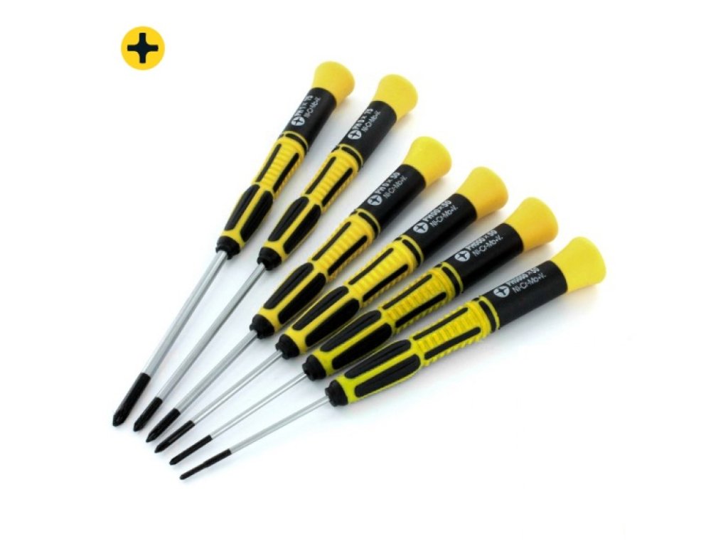 Phillips head screwdriver set with long shank for easy access to hard to reach places. Made of nickel-chromium-molybdenum steel (SAE8660) + vanadium steel: