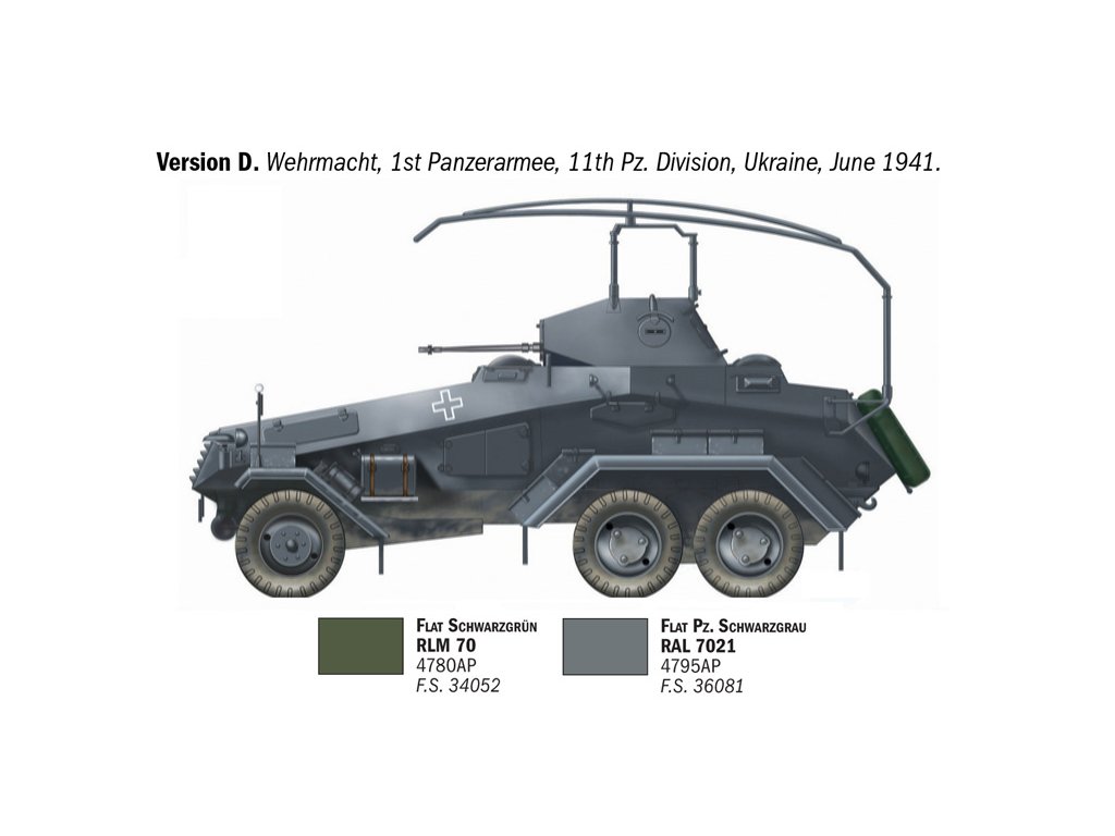 Plastic model kit of a German heavy armored reconnaissance vehicle from World War II.