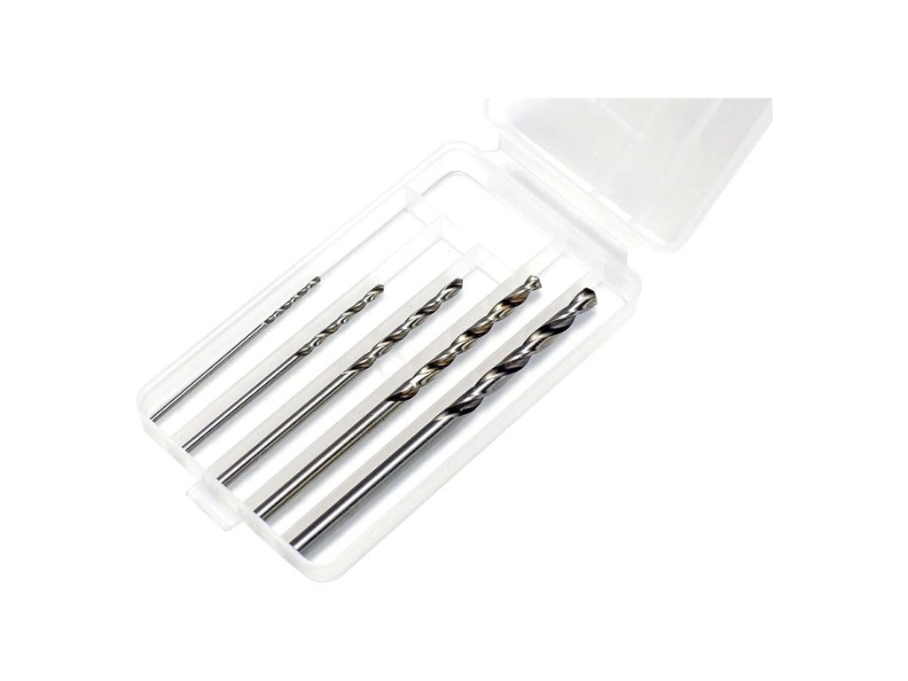 Set of high-quality Tamiya drill bits for use in a hand drill. The set includes drill bits in sizes 1.0 / 1.5 / 2.0 / 2.5 / 3.0 mm.