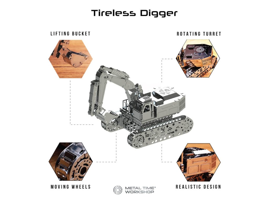 Metallic model kit. Made of high-quality polished steel sheet by laser burning and precise machining. Suitable for moderately advanced and older children. The kit includes nippers, a file, gloves, a cleaning cloth and collectibles such as a badge and stickers.