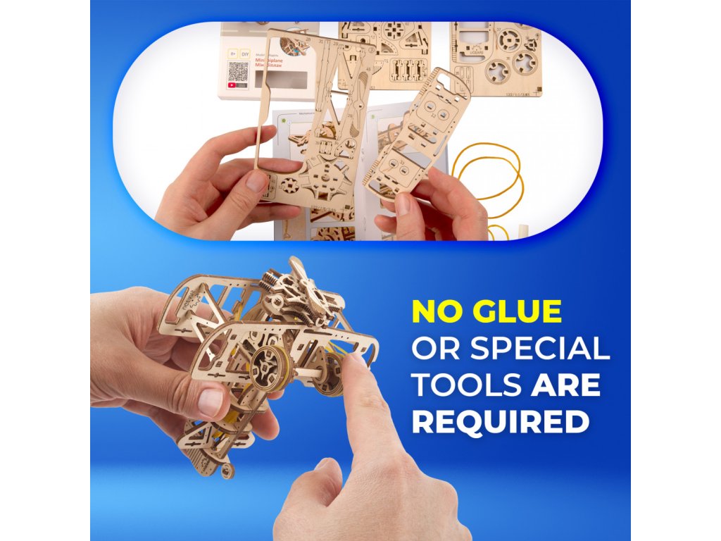 UGEARS wooden construction kits of mechanical models are intended for children and adults. All parts are cut with precise laser technology from high-quality plywood. The precision of the parts guarantees convenient assembly of even more complex types of models. Almost all UGEARS models are functional in some way, either in the form of moving parts or thanks to the rubber drive. The models can be disassembled repeatedly, no glue is used for assembly.