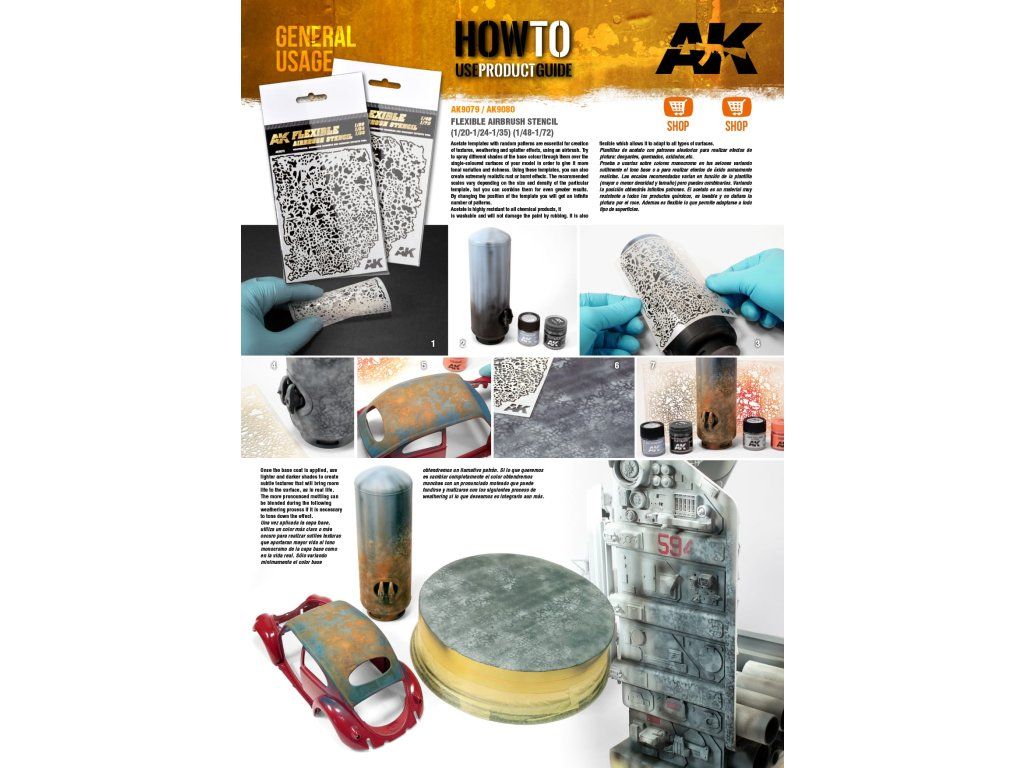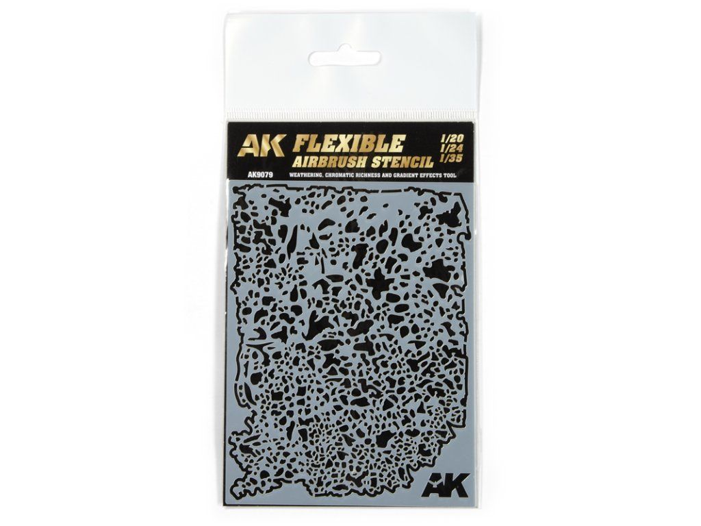 Šablóna určená pre použitie so striekacou pištoľou. Je flexibilná, ľahko sa prispôsobuje a nepoškodzuje povrch a jednoduchá na vyčistenie. Vzor šablóny umožňuje vytvoriť dokonalý podklad pre starý a zvetraný povrch napr. hrdzu, odlúpnutú farbu apod. Vhodné pre mierky 1/20, 1/24 a 1/35.