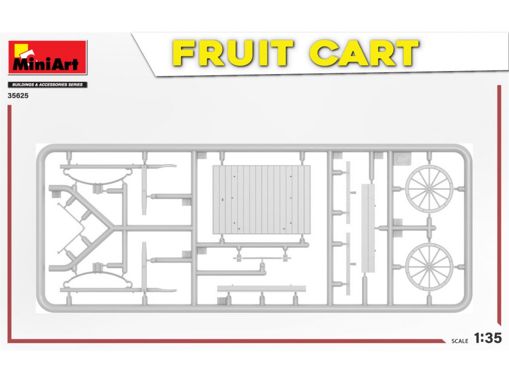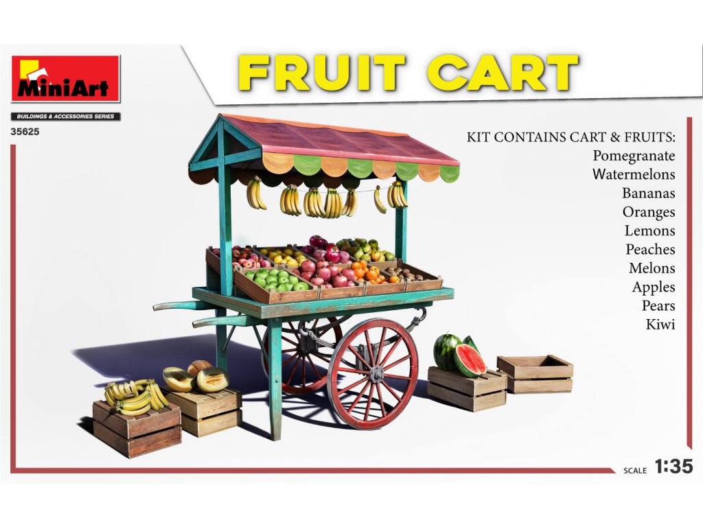 Stavebnica plastového modelu pouličného vozíka / stánku s ovocím.