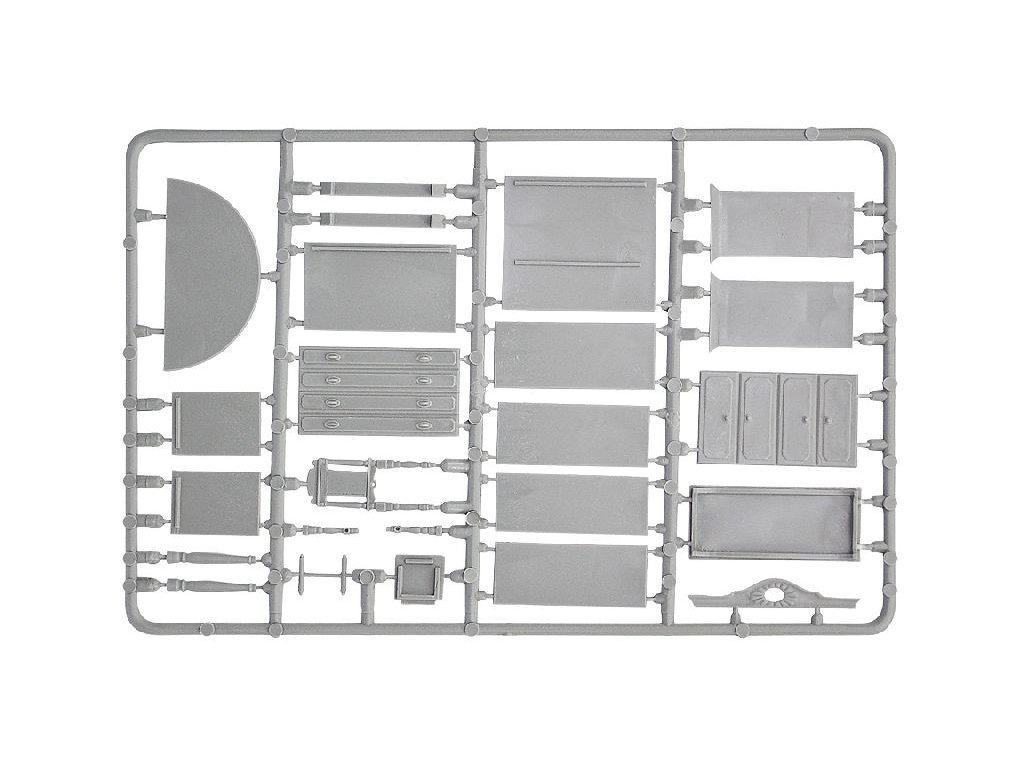 Stavebnica plastového modelu nábytku do diorámy.
