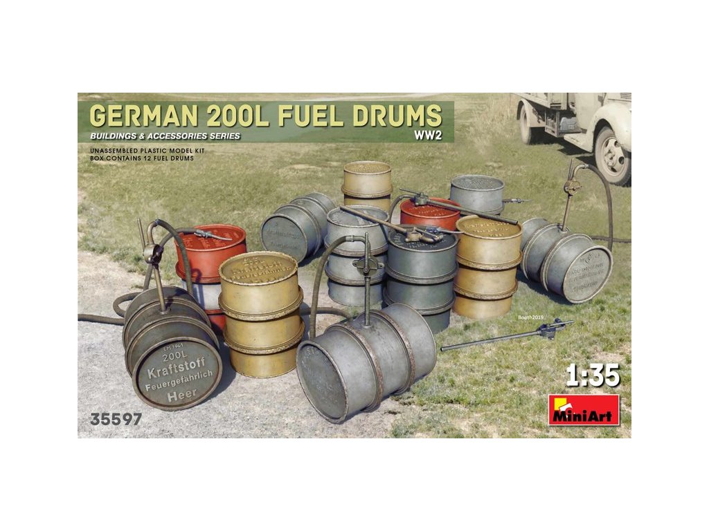 Plastová stavebnica nemeckých sudov na palivo z obdobia 2. sv. vojny.