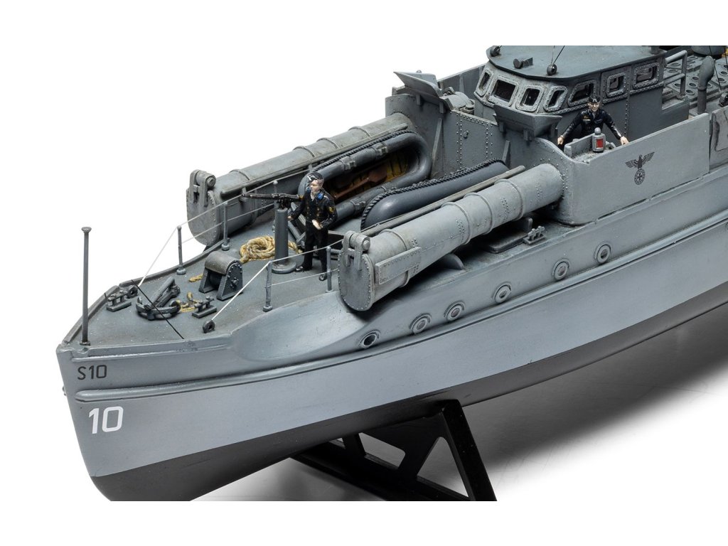 Stavebnica plastového modelu nemeckého torpédového člna z obdobia druhej svetovej vojny.