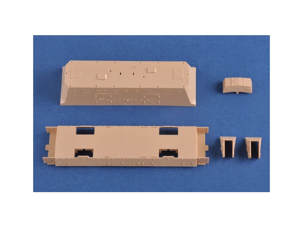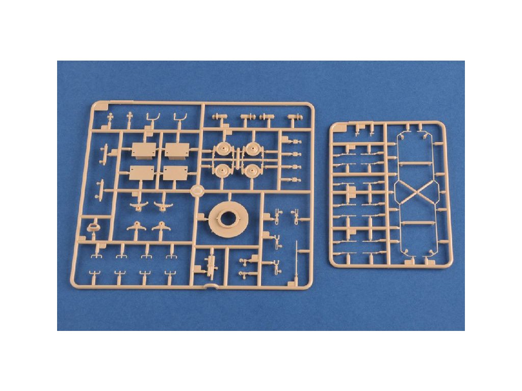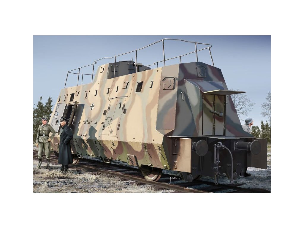 Stavebnica plastového modelu vozňa zo zostavy nemeckého obrneného vlaku z obdobia 2. svetovej vojny.
