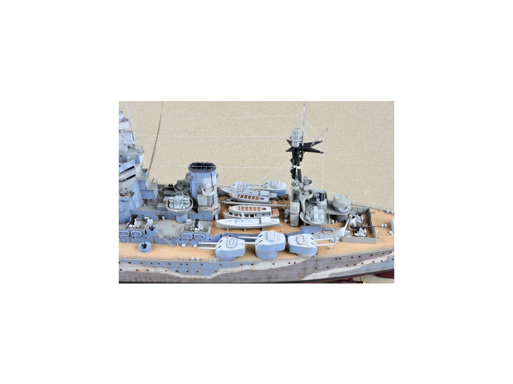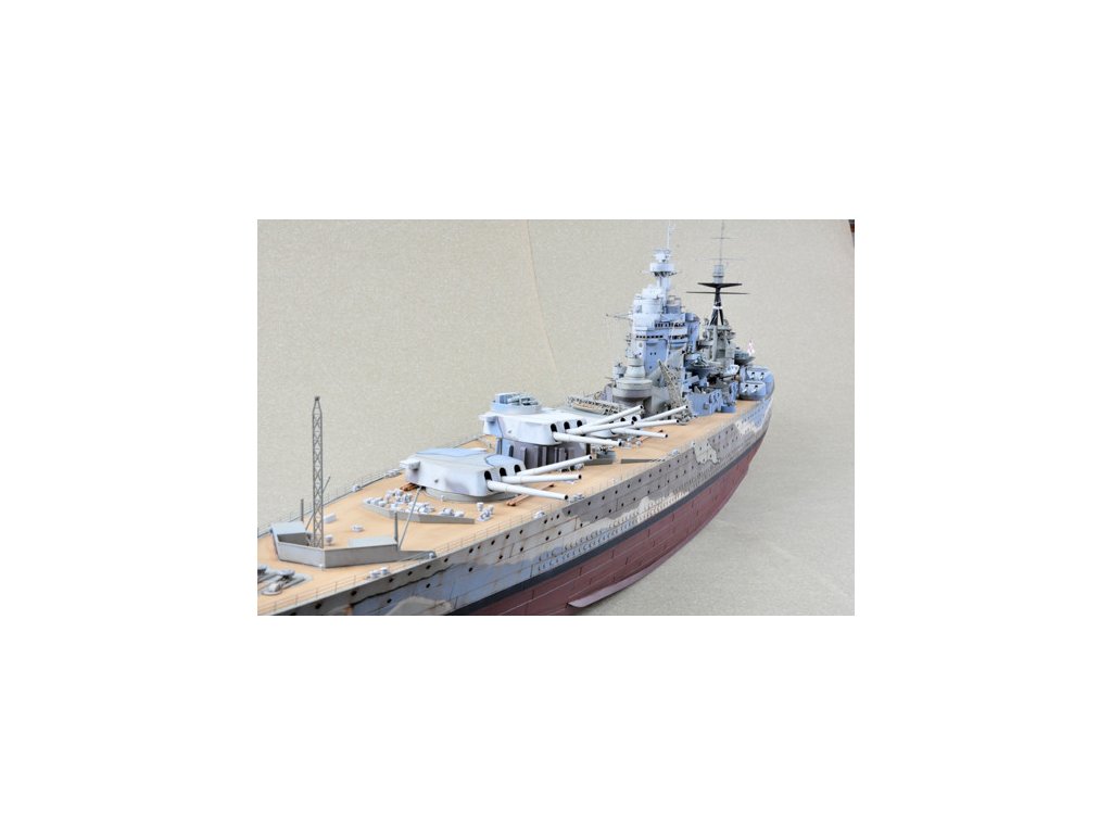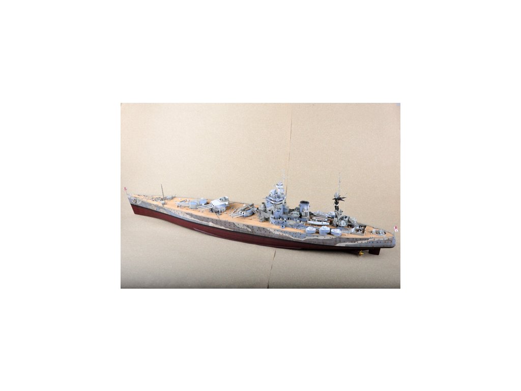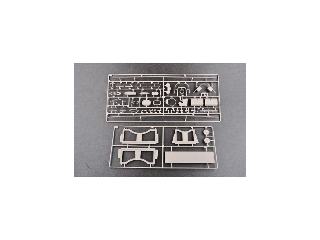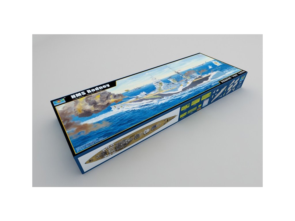 Stavebnica plastového modelu britskej bojovej lode z obdobia 2. svetovej vojny. Kýl HMS RODNEY bol položený v lodenici Cammell Laird v Birkenheadone 28. decembra 1922, a spustená na vodu bola 17. decembra 1925. Počas nórskeho ťaženia v apríli 1940 RODNEY zasiahla 500 kg bomba zhodená nemeckým bombardérom, bola však opravená a pokračovala v službe. Na konci roku 1940 RODNEY hľadal, ale minul nemeckú vreckovú bitevnú loď ADMIRAL SCHEER. 27. mája 1941 sa RODNEY zúčastnil akcie, ktorá vyústila do potopenia nemeckej bitevnej lode BISMARCK a vypálila takmer 380 nábojov 16-palcových granátov. Od konca roku 1941 do roku 1942 bol RODNEY nasadený do Stredozemného mora ako sprievod konvoja so sesterskou loďou NELSON. Po invázii na Sicílii v roku 1943 bol RODNEY prvou britskou bitevnou loďou, ktorá vstúpila na Maltu od roku 1940, a bola aktívna v Salernolande v septembri 1943. Počas vylodenia v Normandii 6. júna 1944 bola RODNEY v zálohe, ale od 7. júna do 9. júla 1944 vypálila do predmostia vylodenia viac ako 500 16-palcových nábojov a mnohými stovkami 6-palcových a 4,7-palcových nábojov. Po skončení vojny v roku 1945 bola RODNEY prevedená do rezervy a v roku 1948 predaná do šrotu.