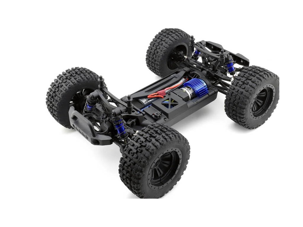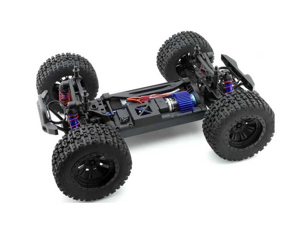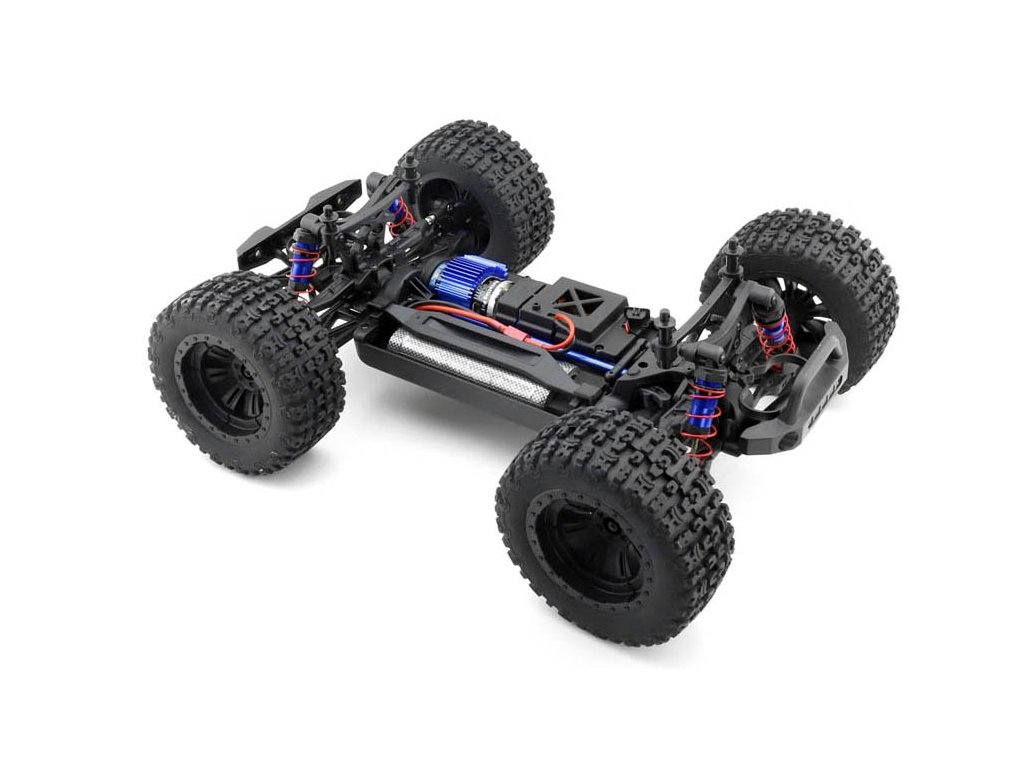Model monster trucku v mierke 1:10 s pohonom všetkých kolies 4x4, poháňaný jednosmerným motorom vrátane RC volantovej súpravy 2,4 GHz. Vodeodolný 60A regulátor, prijímač a 15 kg servo. Bez pohonného akumulátora a nabíjačky. Oranžová karoséria.