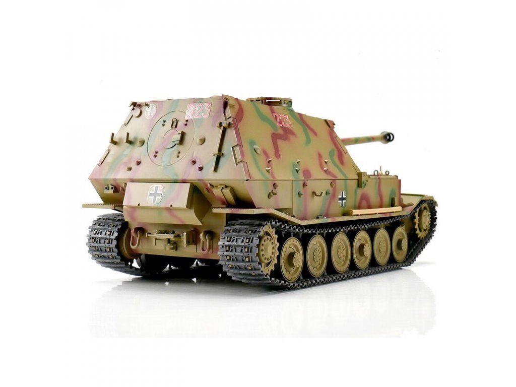 Stavebnica nemeckého samohybného dela na pásovom podvozku používaného počas 2. svetovej vojny. Detailné spracovanie, množstvo kovových dielov. Stavebnica obsahuje plastové a kovové nezostavené diely a predmontované mechanické časti (kvalitné kovové prevodovky s motormi 380, servá záklzu a námeru hlavne, diely na plne pohyblivý kanón). Časť podvozku modelu je kovová (ramená zavesenia kolies, hnacie a napínacie kolesá,...).