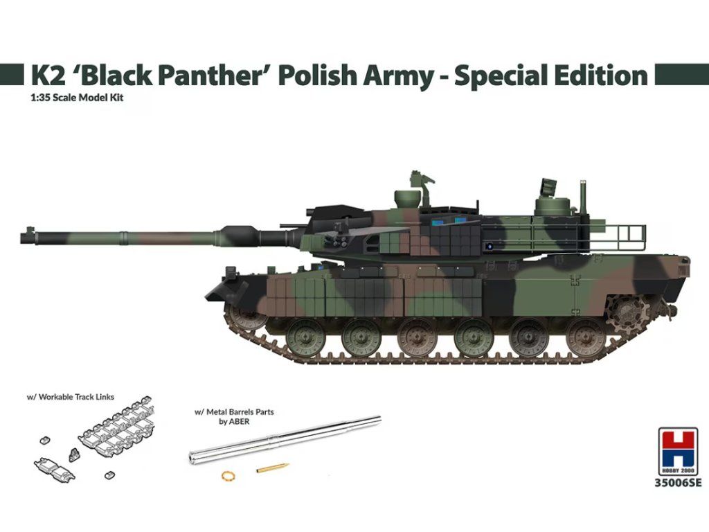 Stavebnica plastového modelu juhokórejského hlavného bojového tanku v službách Poľskej armády. Súčasťou balenia je aj kovové delo a pásy z jednotlivých článkov.
