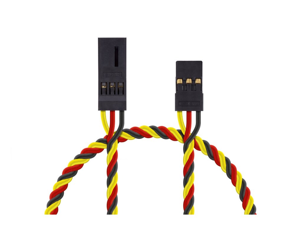 Krútený hrubý predlžovací kábel s konektormi Hitec/JR s dĺžkou 600 mm a PVC izoláciou, prierez vodičov 0,25 mm2.