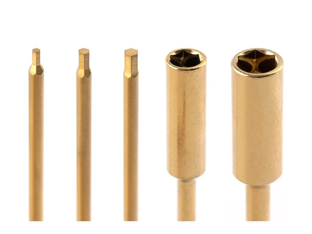 Súčasťou balenia sú 1,5 mm, 2,0 mm, 2,5 mm, 5,5 mm a 7,0 mm bity kompatibilné s bežnými 6,35 mm šesťhrannými adaptérmi.