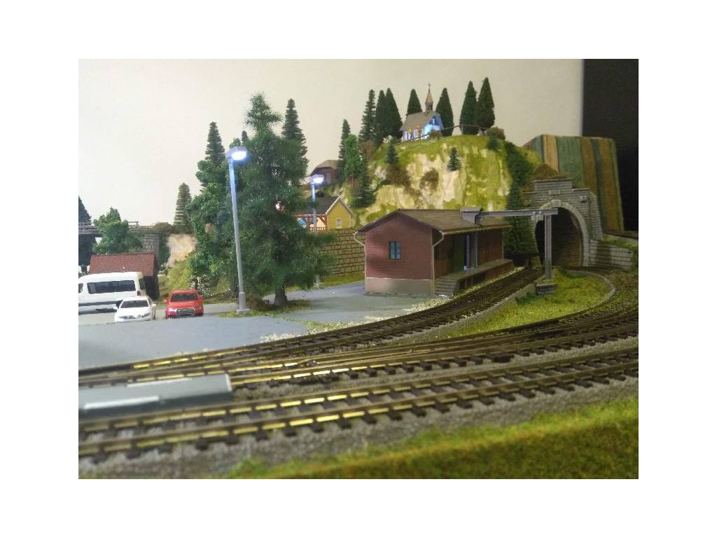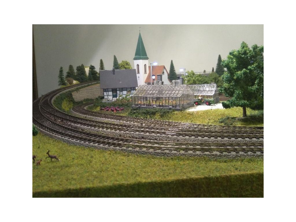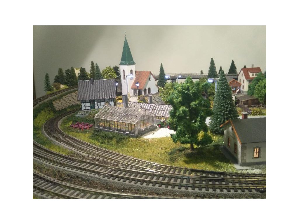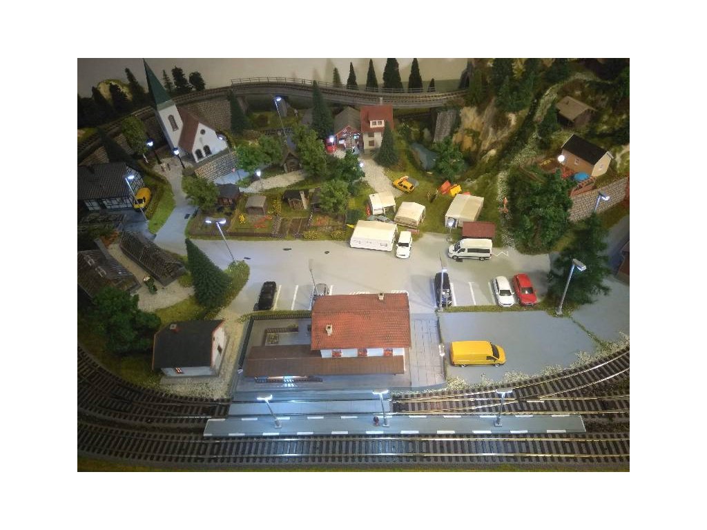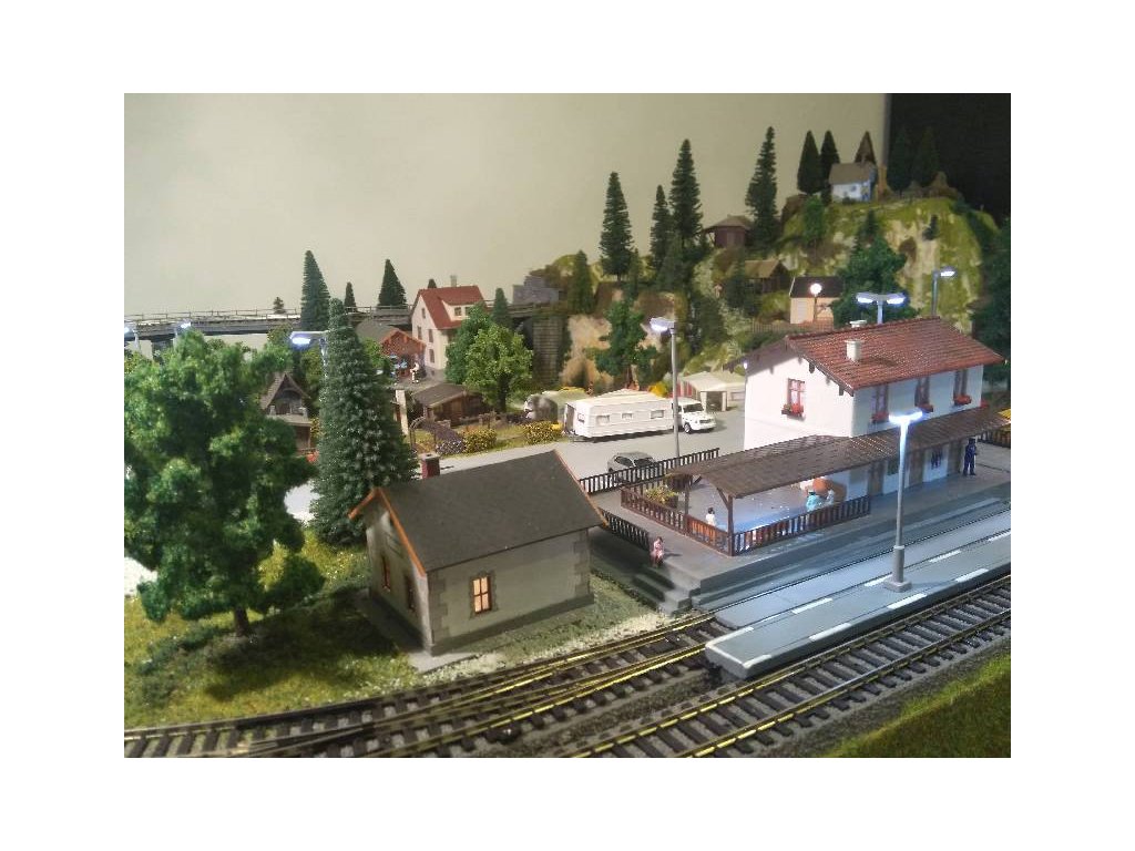 Pre terén koľajiska bol použitý obľúbený polotovar Noch 81580 Königsfeld. Koľaje sú Piko A-Gleis s podložím, ovládanie je kompletne digitálne Piko Light control, ovláda vozidlá aj výhybky. Pre pohon výhybiek sú použité moderné servoprestavníky, takže chod výhybiek je veľmi tichý a modelovo pomalý. Osvetlenie budov aj ulíc je Viessmann. Domčeky sú Faller, Piko a Igramodel. Vegetácia je Faller a Noch, figúrky sú Faller a Noch. Tunelové portály sú Noch. Voda v potoku a jazere je Faller. Vozidlá sú Herpa.