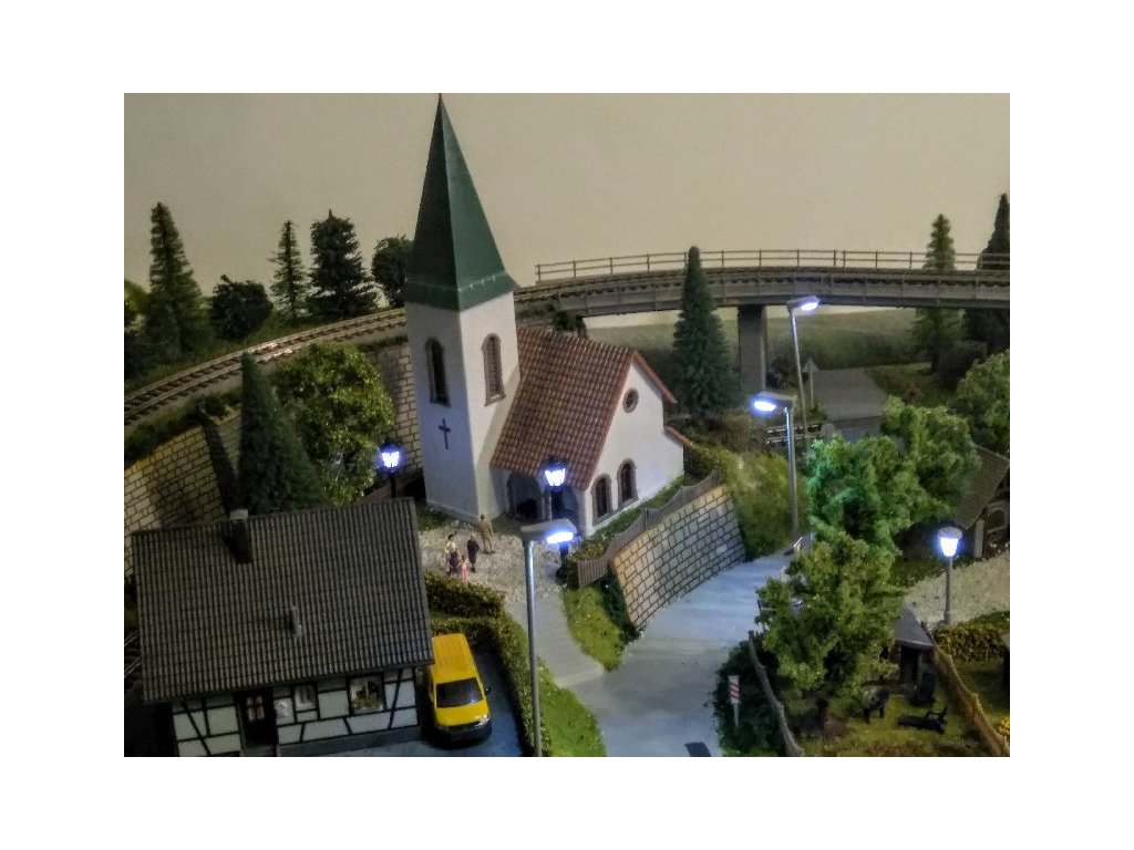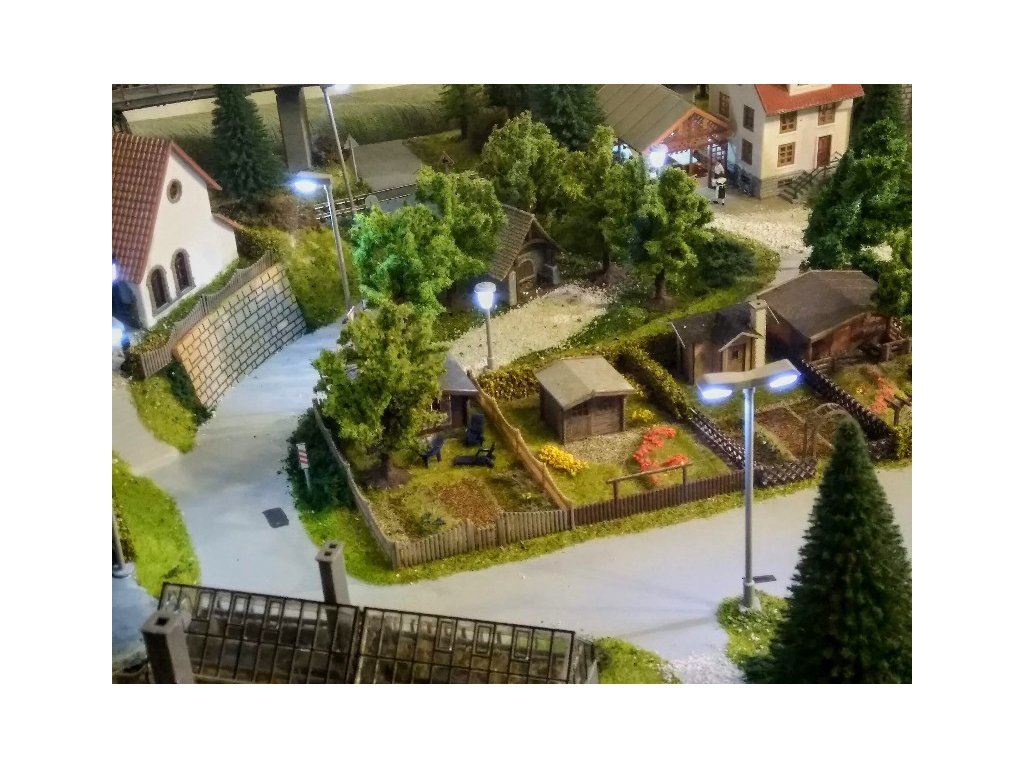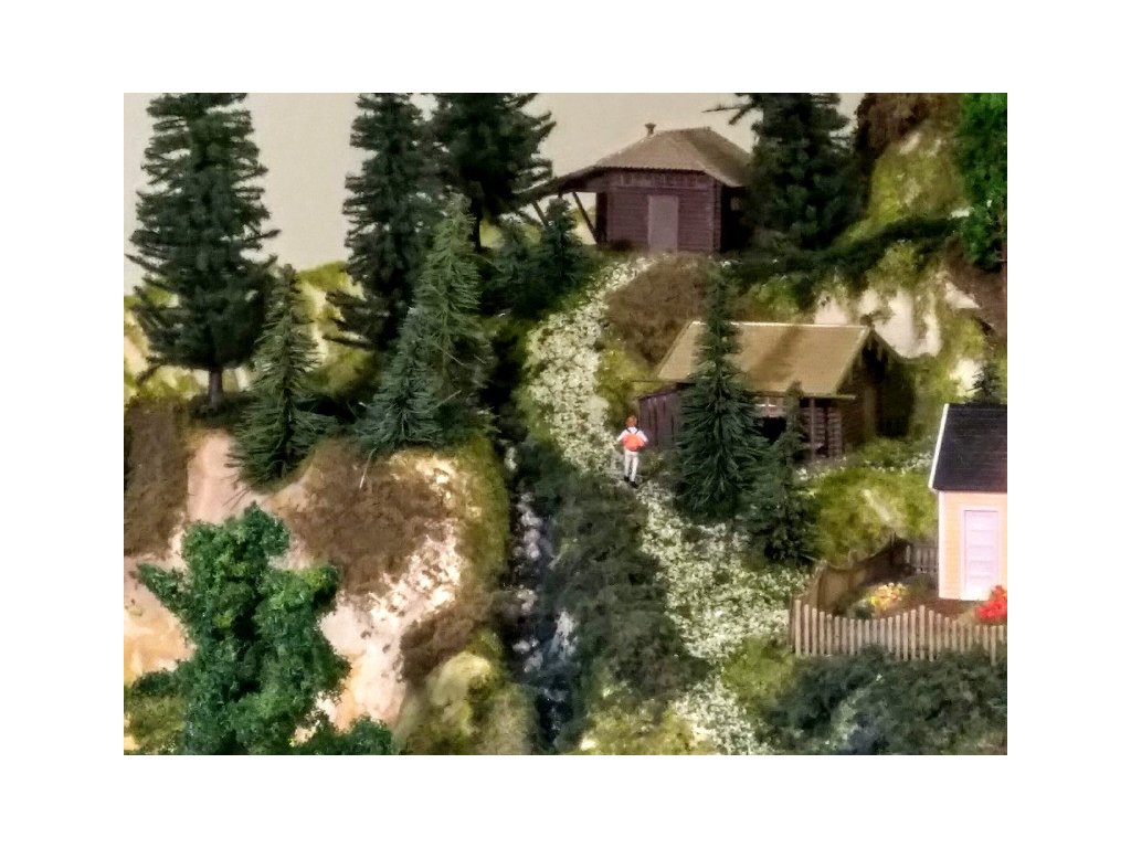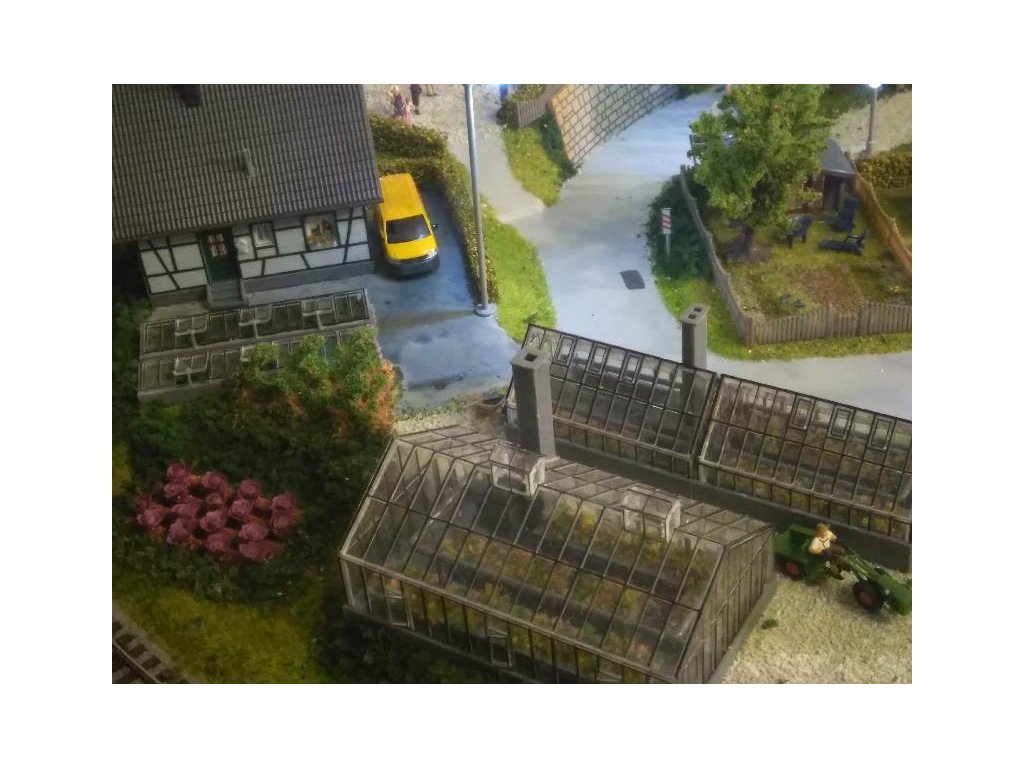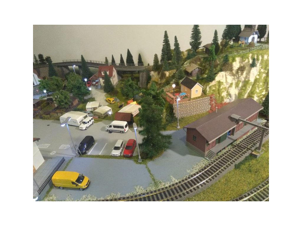 Pre terén koľajiska bol použitý obľúbený polotovar Noch 81580 Königsfeld. Koľaje sú Piko A-Gleis s podložím, ovládanie je kompletne digitálne Piko Light control, ovláda vozidlá aj výhybky. Pre pohon výhybiek sú použité moderné servoprestavníky, takže chod výhybiek je veľmi tichý a modelovo pomalý. Osvetlenie budov aj ulíc je Viessmann. Domčeky sú Faller, Piko a Igramodel. Vegetácia je Faller a Noch, figúrky sú Faller a Noch. Tunelové portály sú Noch. Voda v potoku a jazere je Faller. Vozidlá sú Herpa.