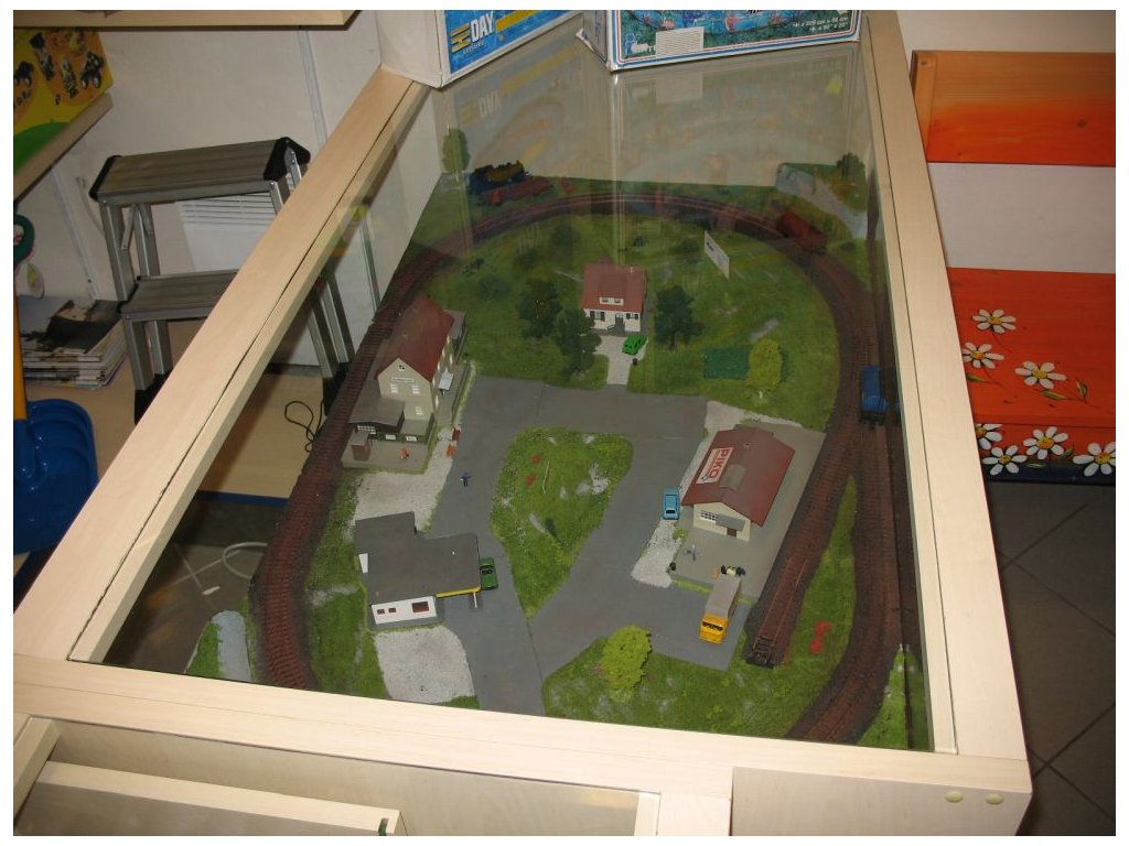 Koľajisko postavené pre malú predajňu hračiek v najzákladnejšom prevedení s minimálnym rozpočtom.