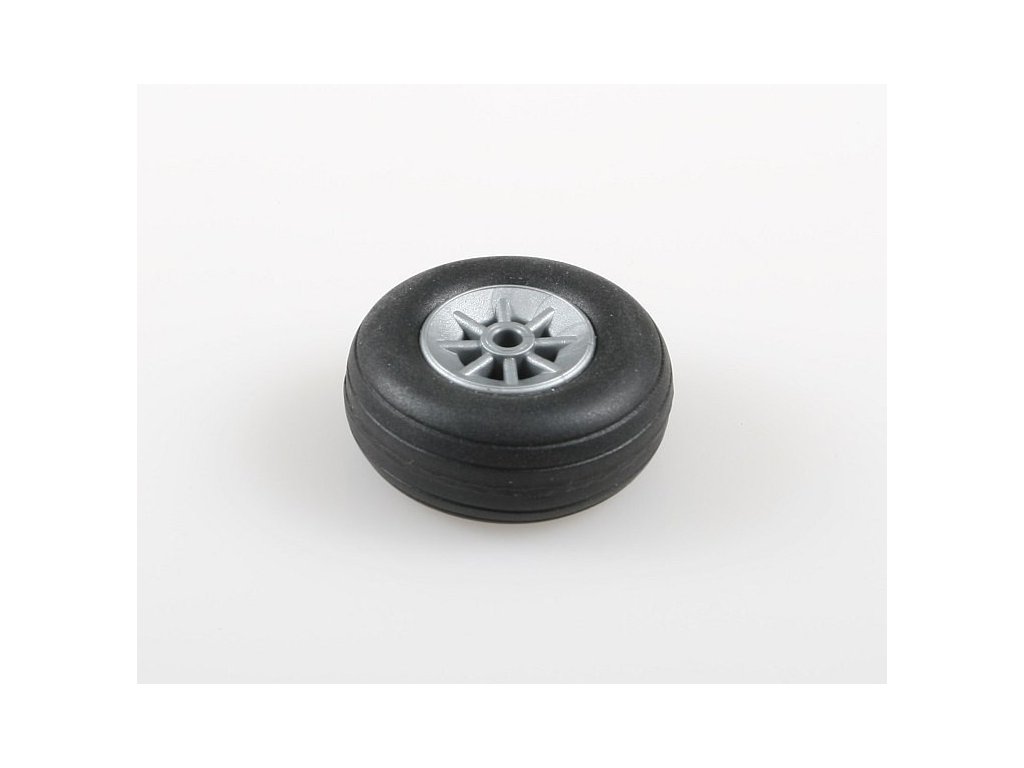 Kompletné koleso pre RC model lietadla, plastový disk, gumená pneumatika.