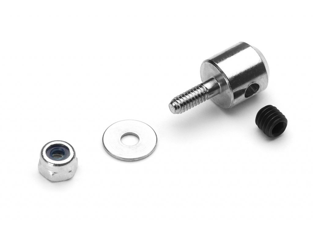 Duralové alebo mosadzné koncovky tiahla určené na pripevnenie ovládacieho tiahla pr. 3 mm bez závitu k páke serva s možnosťou nastavovania dĺžky pomocou nastavovacej imbus skrutky M4x4. K zaisteniu čapu na kotúčika serva slúži samopoistná matica M3.