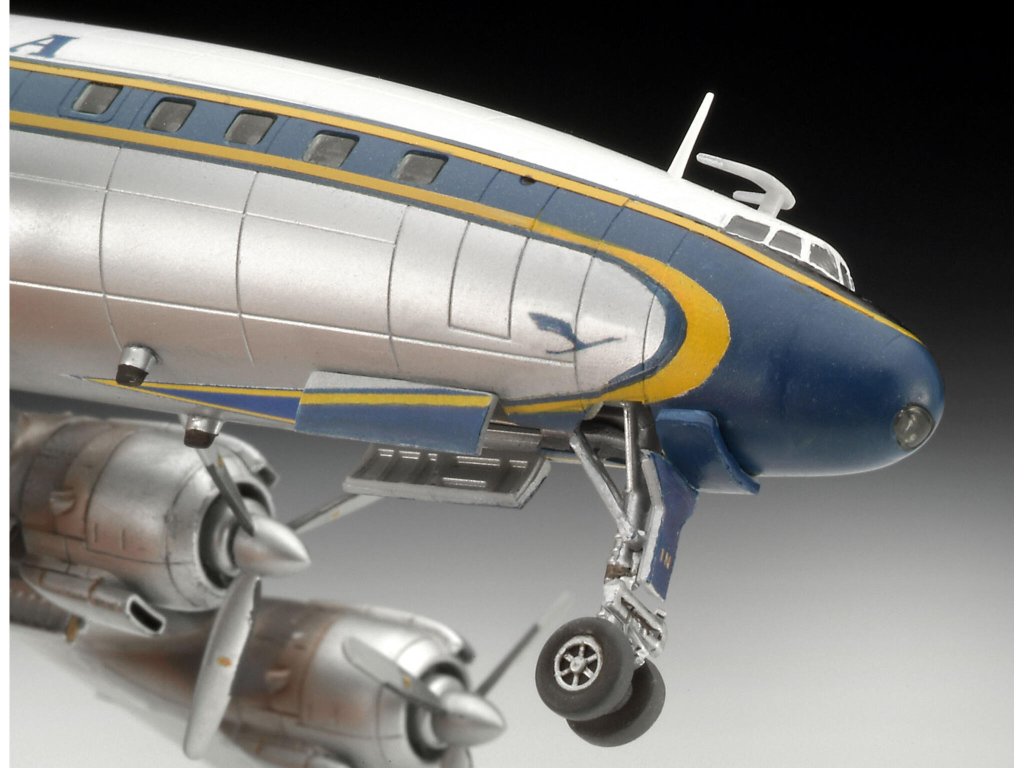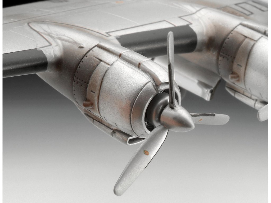 Stavebnica plastového modelu amerického dopravného vrtuľového lietadla z 50. rokov minulého storočia.