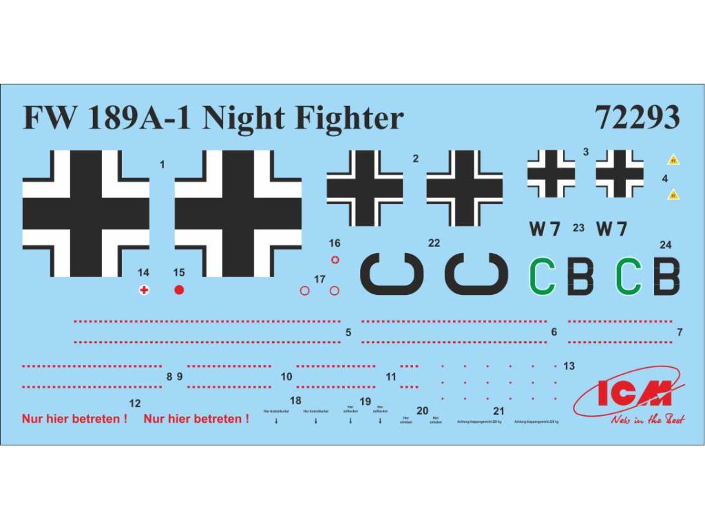 Sada stavebníc plastových modelov nemeckých stíhacích lietadiel určených na nočný boj, prieskum a bombardovanie. Stavebnica obsahuje diely na stavbu lietadiel Messerschmitt Bf 109E-4, Focke-Wulf Fw 189A-1 a Dornier Do 17Z-10.