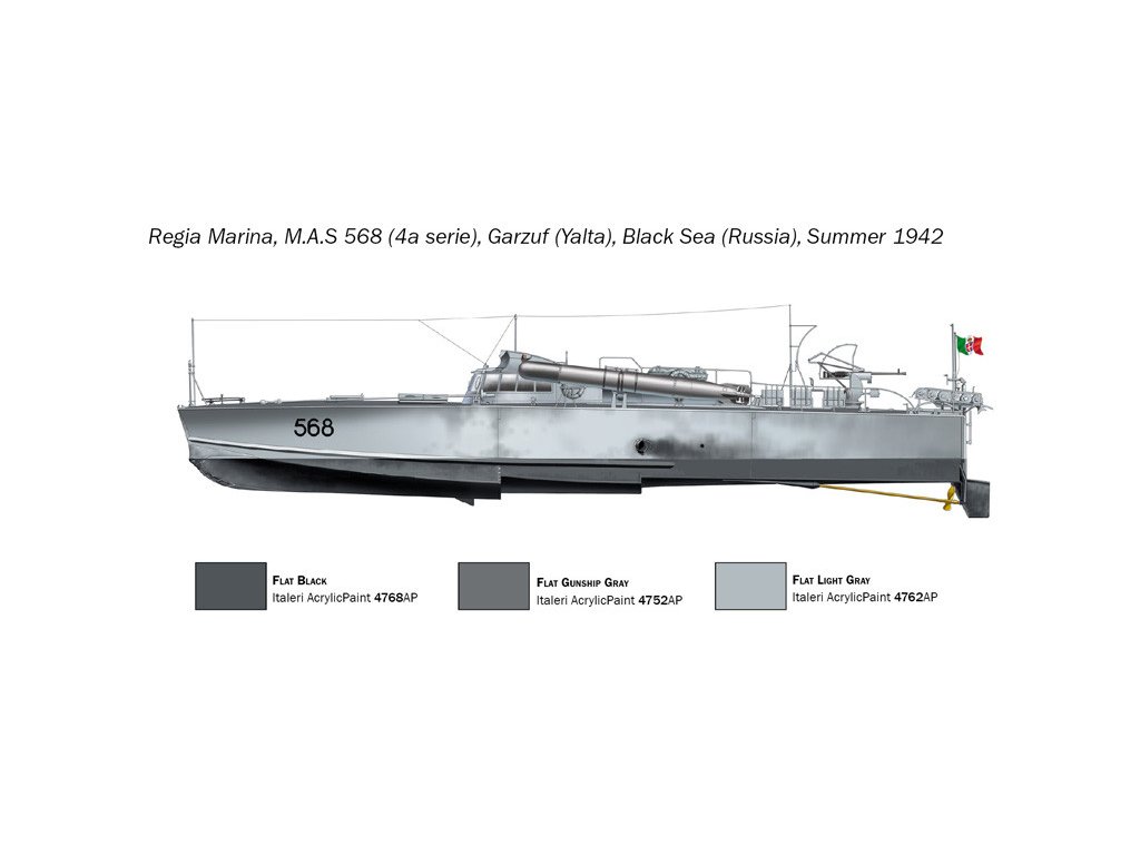 Stavebnica plastového modelu talianskeho torpédového člnu z obdobia 2. svetovej vojny. Stavebnica obsahuje aj 6 figúriek.