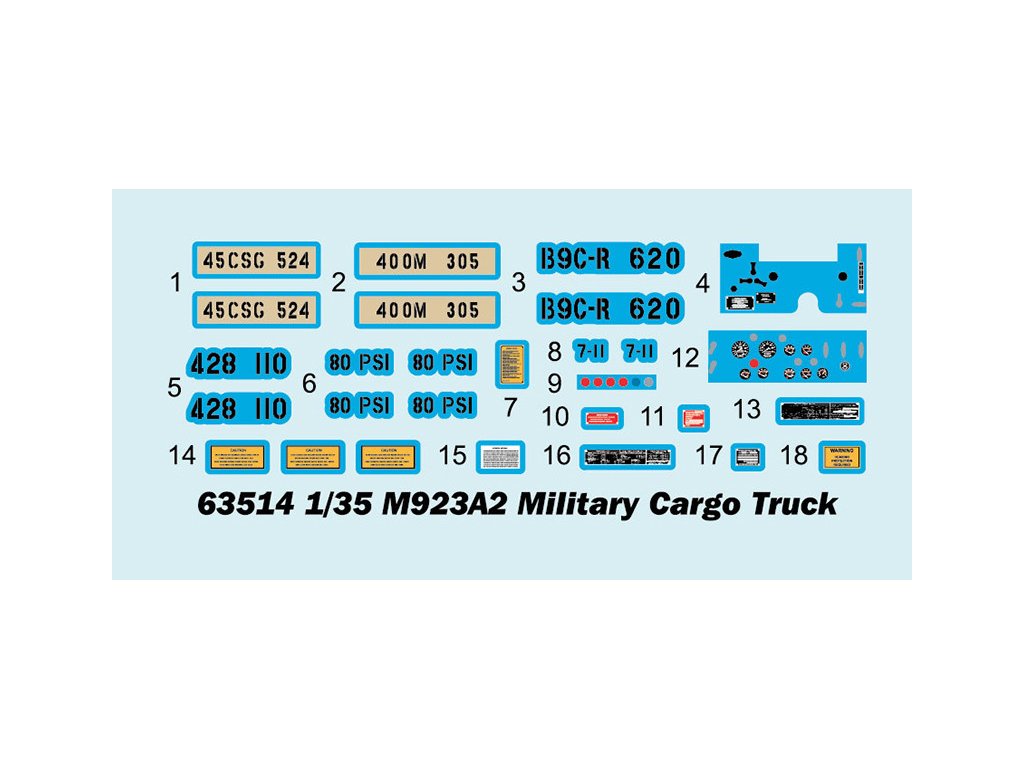 Všeobecné informácie: Stavebnica z plastu, obsahuje nezostavené a nenafarbené diely. V niektorých druhoch stavebníc sú obsiahnuté aj doplnkové kovové, PUR a gumené diely. Pozor, obsahuje drobné diely, udržujte mimo dosahu deti do 3 rokov. Nevhodné pre deti do 14 rokov.
