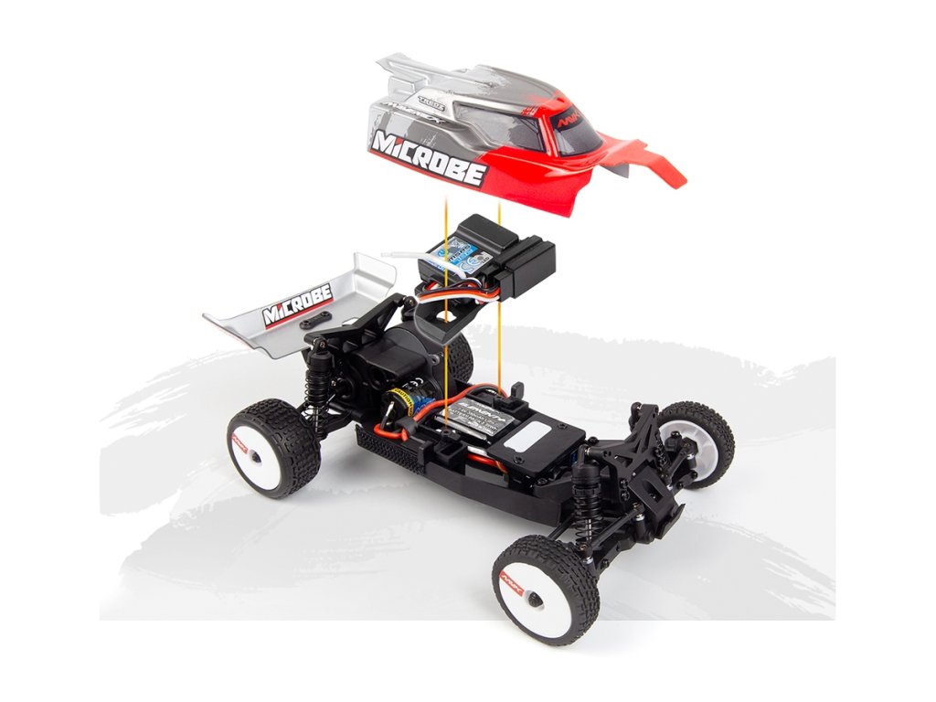 Elegantné 1,5 mm eloxované hliníkové plato podvozku, osadenie guličkovými ložiskami a plynulá 3-kolesová zadná prevodovka spoločne dodávajú modelu Microbe stabilný a presný pocit z jazdy. Pridajte olejové tlmiče a kolesá s penovými vložkami a získate malú buggy, ktorá miluje zákruty, pohlcuje nerovnosti a s istotou vystreľuje zo zákrut.