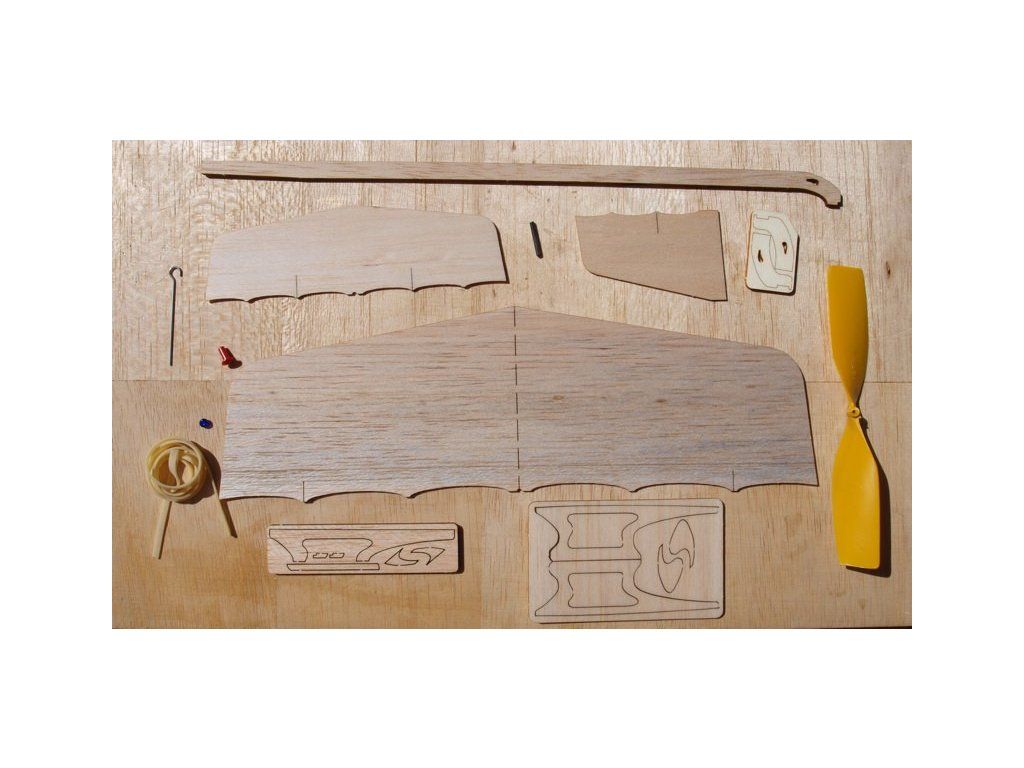 Stavebnica balzového modelu na pohon gumovým zväzkom. Vhodné pre začínajúcich modelárov.