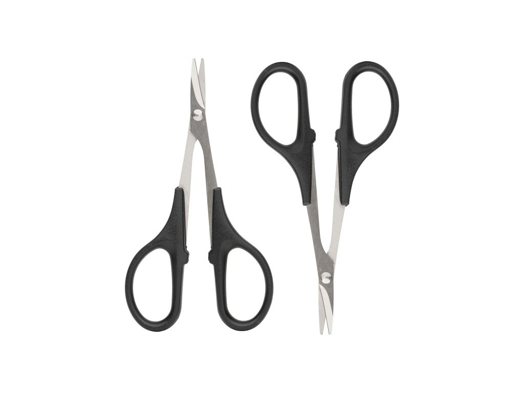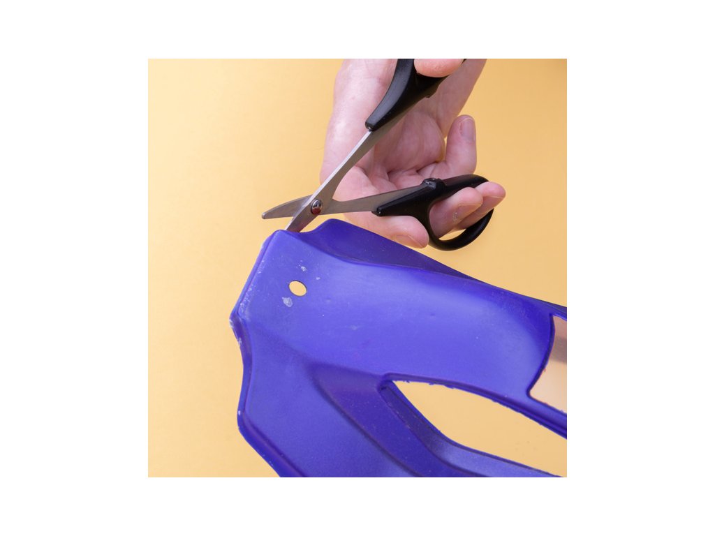 Sada nožníc určená na ostré a presné rezy pri obrábaní lexanových karosérií či iných plastov. Zakrivené nožnice uľahčujú vytváranie hladkých oblých rezov, zatiaľ čo rovné nožnice sú ideálne na priame rezy a orezávanie prebytočného materiálu. Čepele nožníc sú vyrobené z ocele.