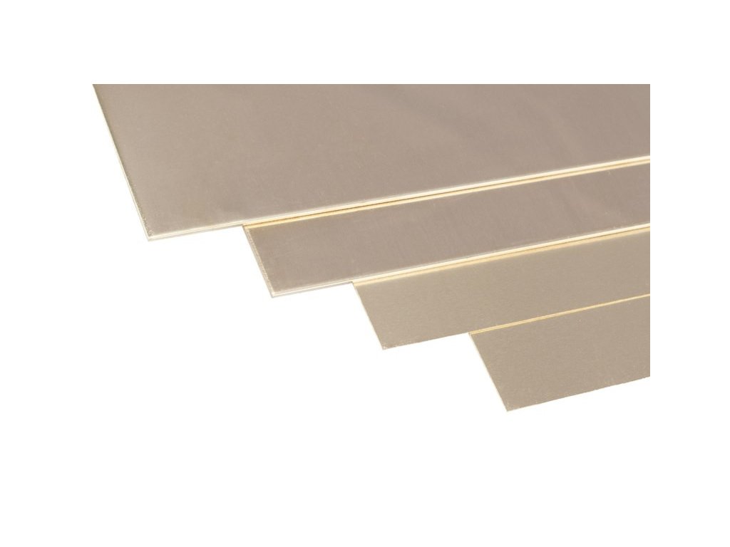 Mosadzný plech. Výborný materiál na tvorbu rôznych detailov na modeloch maketových lietadiel, lodí, aj na všeobecné použitie. V spojení z mosadznými profilmi alebo rúrkami je možné vytvárať aj náročnejšie kovové časti a súčiastky, keďže sa ľahko spája spájkovaním.