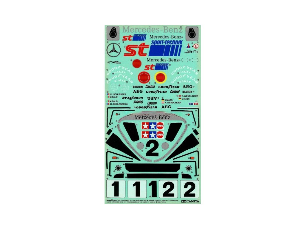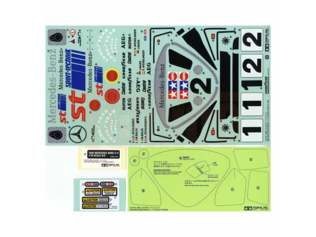 Nálepky určené pre karosériu RC modelu na diaľkové ovládanie Mercedes-Benz C11 Gr.C 1/10 s číslom Tamiya: 47484.