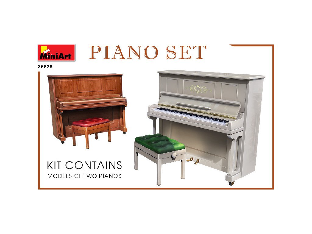 Stavebnica plastového modelu klavíra a piana do diorámy s civilnou, alebo vojenskou tématikou.