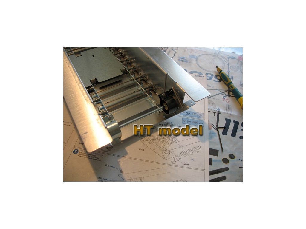 Stavebnica obsahuje plastové a kovové nezostavené diely a predmontované mechanické časti (kvalitné kovové prevodovky s motormi 380, mechanizmus záklzu, mechanizmus námeru hlavne, mechanizmus otáčania veže). Celá spodná časť modelu je kovová, vrátane všetkých hlavných častí pojazdu (časti podvozku, ramená zavesenia kolies, hnacie a napínacie kolesá,...). Kovové sú hlavne dela a guľometu. Priložený je hárok samolepiacich plátov Zimmeritu, takže modelár si môže vybrať aj takúto atraktívnu verziu povrchu modelu.