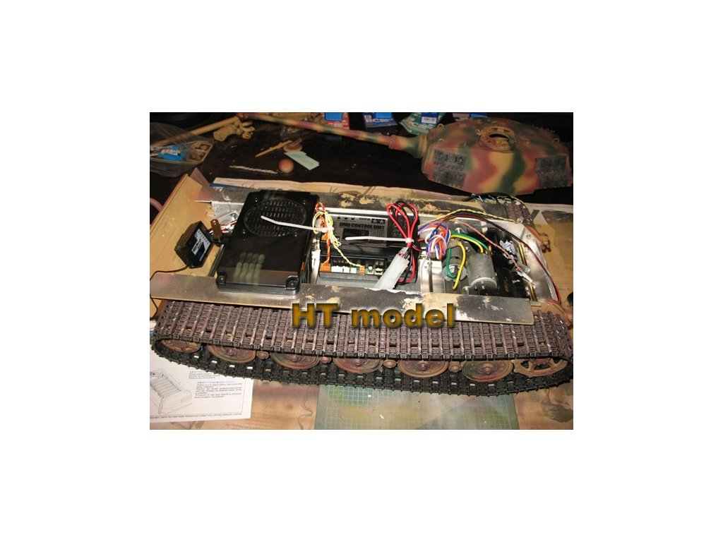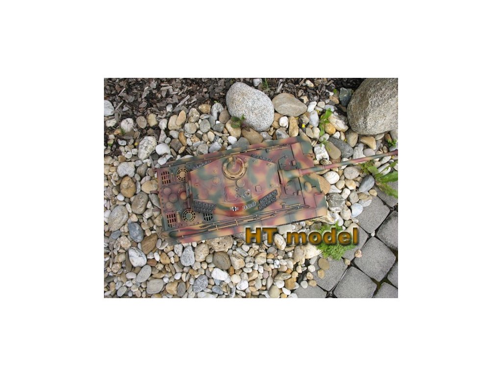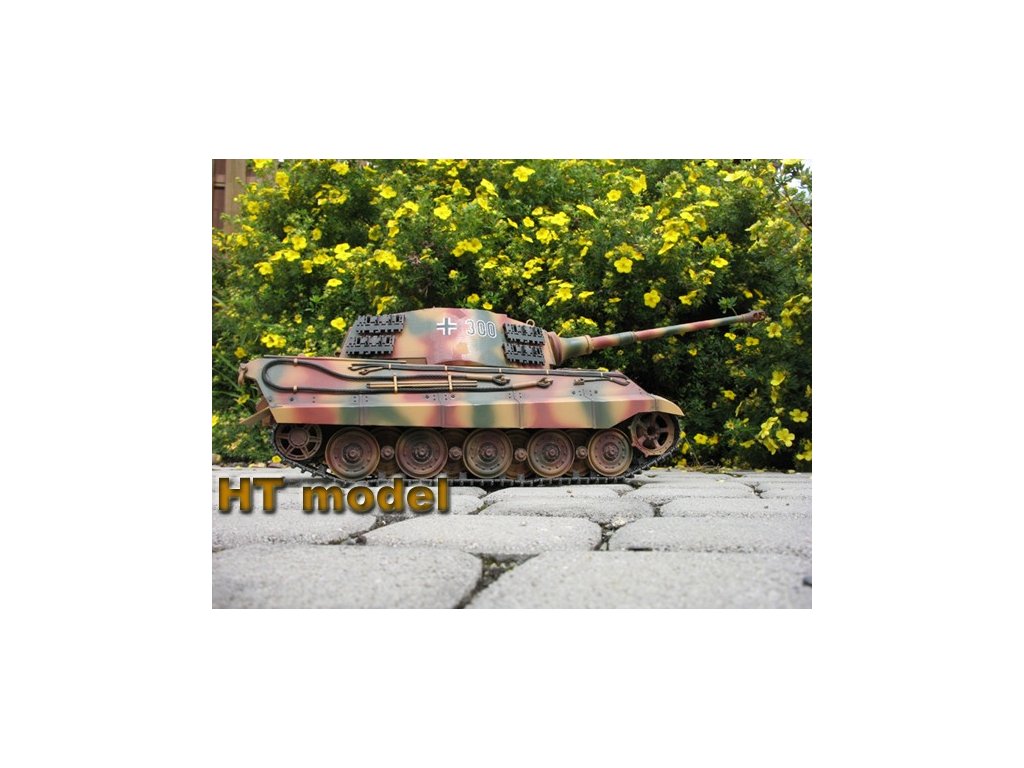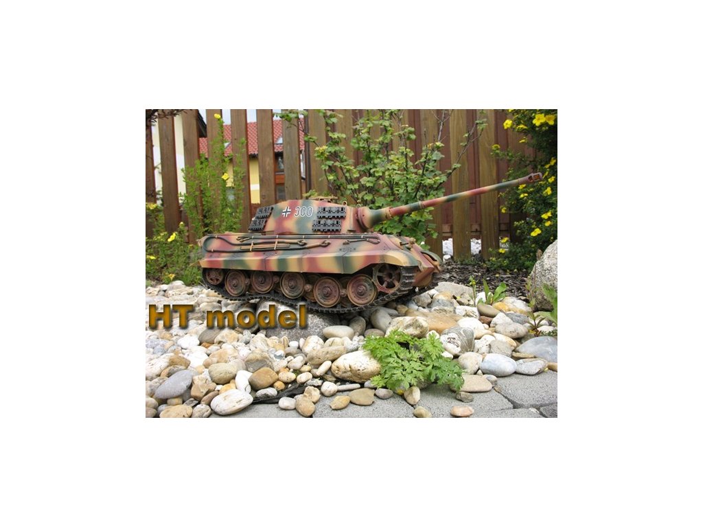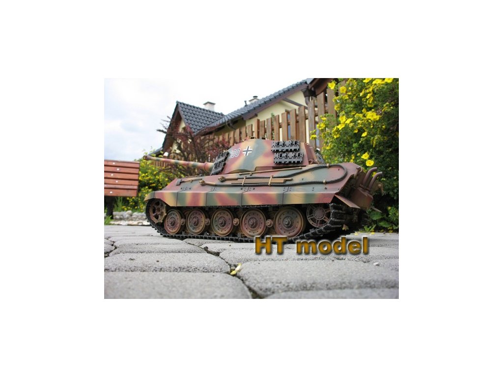 Náš test Pz.Kpfw. VI King Tiger: Tento vydarený model som staval už dvakrát. Prvý raz som si ho postavil pre vlastné potešenie (používam ho už niekoľko rokov) a druhý som staval pre zákazníka. Stavebnica je priam dokonalá, typická Tamiya. Všetky plastové diely sú bezchybne vylisované, kovové časti a spojovací materiál sú prehľadne usporiadané. Stavebný návod je až edukatívne dôkladný a prehľadný. Ak sa nebudete pri stavbe ponáhľať, zvládne ju aj úplný začiatočník. Všetky diely k sebe dokonalo pasujú a netreba riešiť žiadne komplikácie. Stavba sa dá zvládnuť za jediný víkend. Keďže v stavebnici je už všetka potrebná elektronika, stačí dokúpiť RC súpravu a baterku (prípadne nabíjačku). Ja mám k tomuto tanku svoj obľúbený RC set Carson Reflex Car/Boat (6 kanálový, jednoduchý) vysielač. Keďže Carson spolupracuje s Tamiyou, tento vysielač je od výroby "naladený" na MFU Tamiya. Takže stačí len do prijímača nastrkať káble podľa návodu, skalibrovať systém a všetko krásne hneď funguje. Tamiya dáva do svojich modelov veľmi výkonný zvukový modul a kvalitný reproduktor. Môj King Tiger okamžite po naštartovaní zaujme všetkých divákov. Keď dám zvuk naplno, prehluší všetko naokolo. Zvlášť nádherný je výstrel z kanóna s dunivým zvukom a pomalým záklzom. Krásny je aj zvuk guľometu. Jazdné vlastnosti zodpovedajú skutočnosti, je to pomalý tank (Tamiya dbá o modelovú rýchlosť) ale s prekvapujúco dobrou prejazdnosťou terénom. Keďže je to môj najstarší tank od Tamiye, časom sa trochu povolil mechanizmus napínania pásov a teraz sa mi stáva, že sa pri dlhšom jazdení v teréne jeden pás príliš uvoľní. Je treba ho znovu napnúť a to trochu otravuje. Ešte jedna "drobnosť", ktorá mi vadí je uzavretosť MFU Tamiya. Všetko je už naprogramované od výroby a nie je možné zmeniť parametre, alebo zvuky (ako to umožňuje môj obľúbený Elmod Fusion). Na záver však môžem túto stavebnicu len odporúčať. Je to jednoducho skvelý produkt.