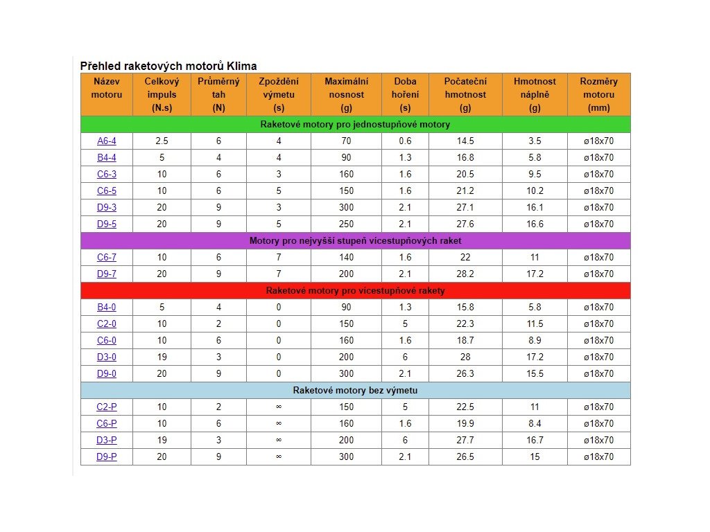 - Raketové motorčeky Klima patria do kategórie P1, predaj osobám starším 18 rokov!