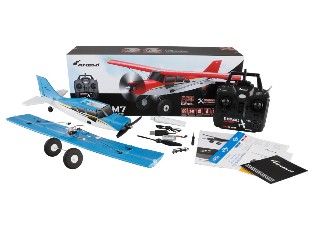 Maule M7 má funkciu 3D akrobacie, ktorá sa spúšťa pomocou jedného tlačidla. Výkonný pohon a rýchla odozva serva umožňujú dynamické lety - či už štart zo zeme alebo priamo z ruky. Lietadlo je vybavené LED osvetlením, ktoré mu dodáva skvelý vzhľad, ale umožňuje aj lietanie za súmraku. Maule M7 sa veľmi ľahko skladá a je pripravený na let len za pár minút. Robustná konštrukcia vyrobená z materiálu EPP ho robí obzvlášť odolným a ľahko sa opravuje v prípade tvrdých pristátí. Model je kompatibilný aj s prijímačmi Futaba (5V S-BUS, 3V DSM).