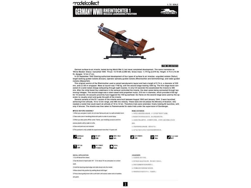 Rheintochter 1 missile 1/72 Model Collect