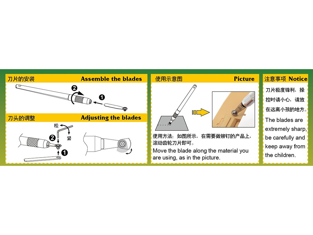 Obsahom balenia je rúčka, sada 5 koliesok o veľkostiach 0.6 , 0.8 , 1 , 1.25 , 1.5mm, plastový kryt.