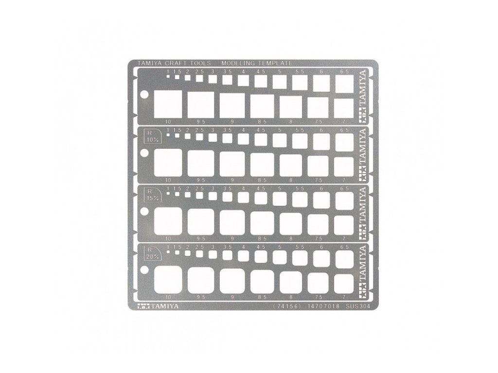 Planžeta obsahuje 4 šablóny so štvorcami veľkostí 1 až 10mm s rôznym zaoblením rohov.