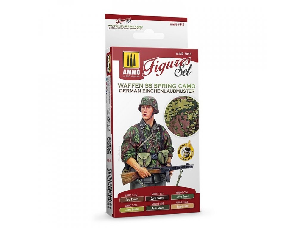 Sada akrylových farieb Ammo Figures - Waffen SS Spring Camo. German Einchenlaubmuster